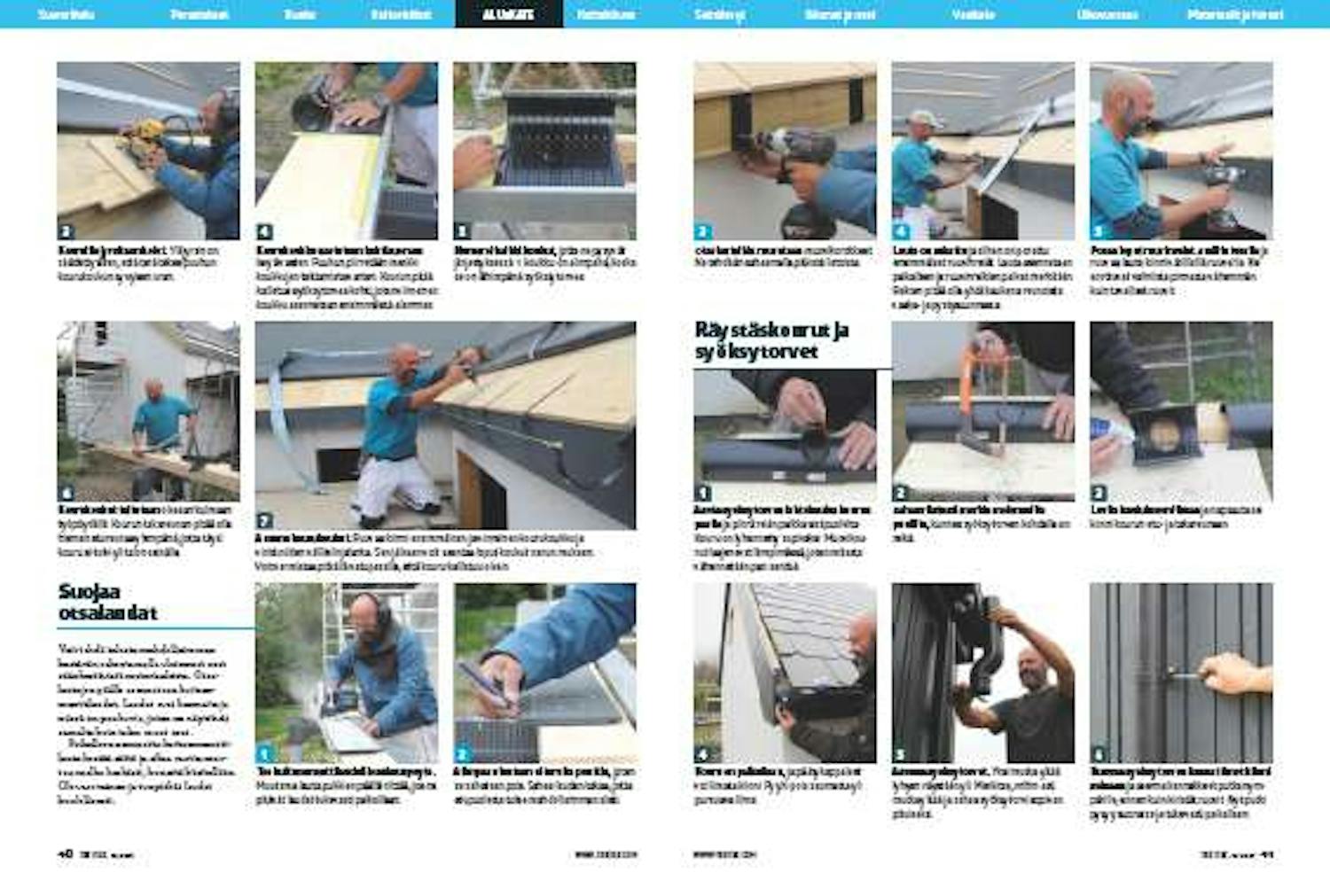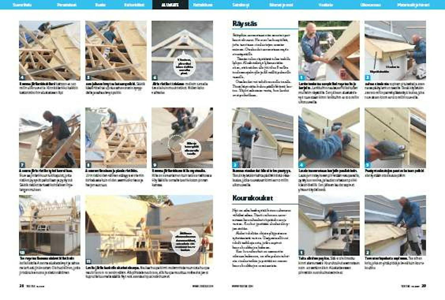 Sen jälkeen on aika nostaa ristikot paikoilleen. Tässä näytetään, miten kokenut kirvesmies asensi ristikot. Harkitse, tarvitsetko tähän työvaihee-seen ammattilaisen apua.
