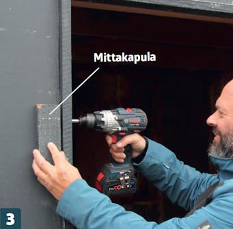 Asenna smyygilauta 2,5 senttiä seinän ulkopuolelle. 25 millin mittakapula pitää huolen siitä, että ovien ja ikkunoiden vie reen jää tarpeeksi tilaa.