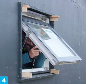 Tue ikkuna paikalleen kiiloilla molemmista suunnista, jotta se ei putoa asentamisen aikana.