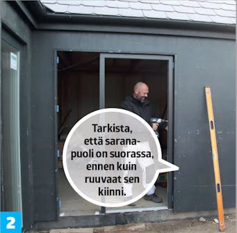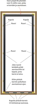 Ovi on periaatteessa iso ikkuna, joten asennusperiaate on suunnilleen sama. Oven pitää olla suorassa, ja joka puolelle pitää jättää yhtä iso rako.