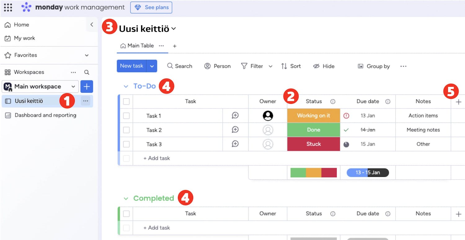 Seuraavissa kappaleissa näytetään, miten luot tilin Monday-ohjelmaan, pääset alkuun oman projektisi kanssa ja käytät ohjelmaa.