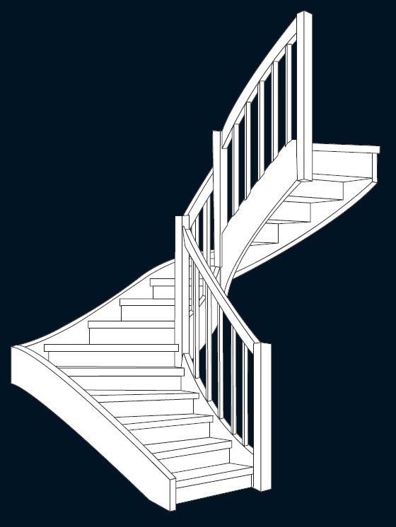 Hiemän tyylikkäämpi porrasmalli, joka voi olla kätevä, ellei huoneessa ole tilaa suorille portaille. Portaiden keskivaiheille voi rakentaa tasanteen. Kulman ylä- ja alapuolella olevat portaat ovat suunnikkaita. Portaat ovat hyvän näköiset, mutta ne eivät ole kovin turvalliset pienille lapsille.