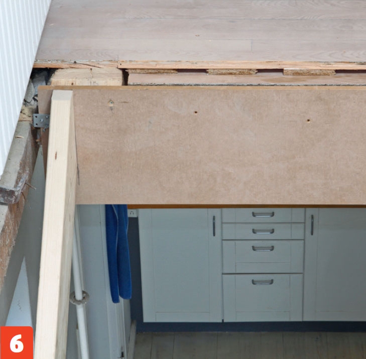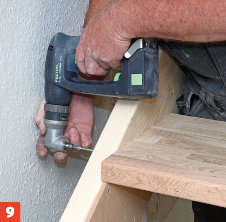 Liimaa ja ruuvaa sivulevy kiinni. Paina levy askelmaa vasten ja ruuvaa levy kiinni viidellä 4x40 millin ruuvilla.