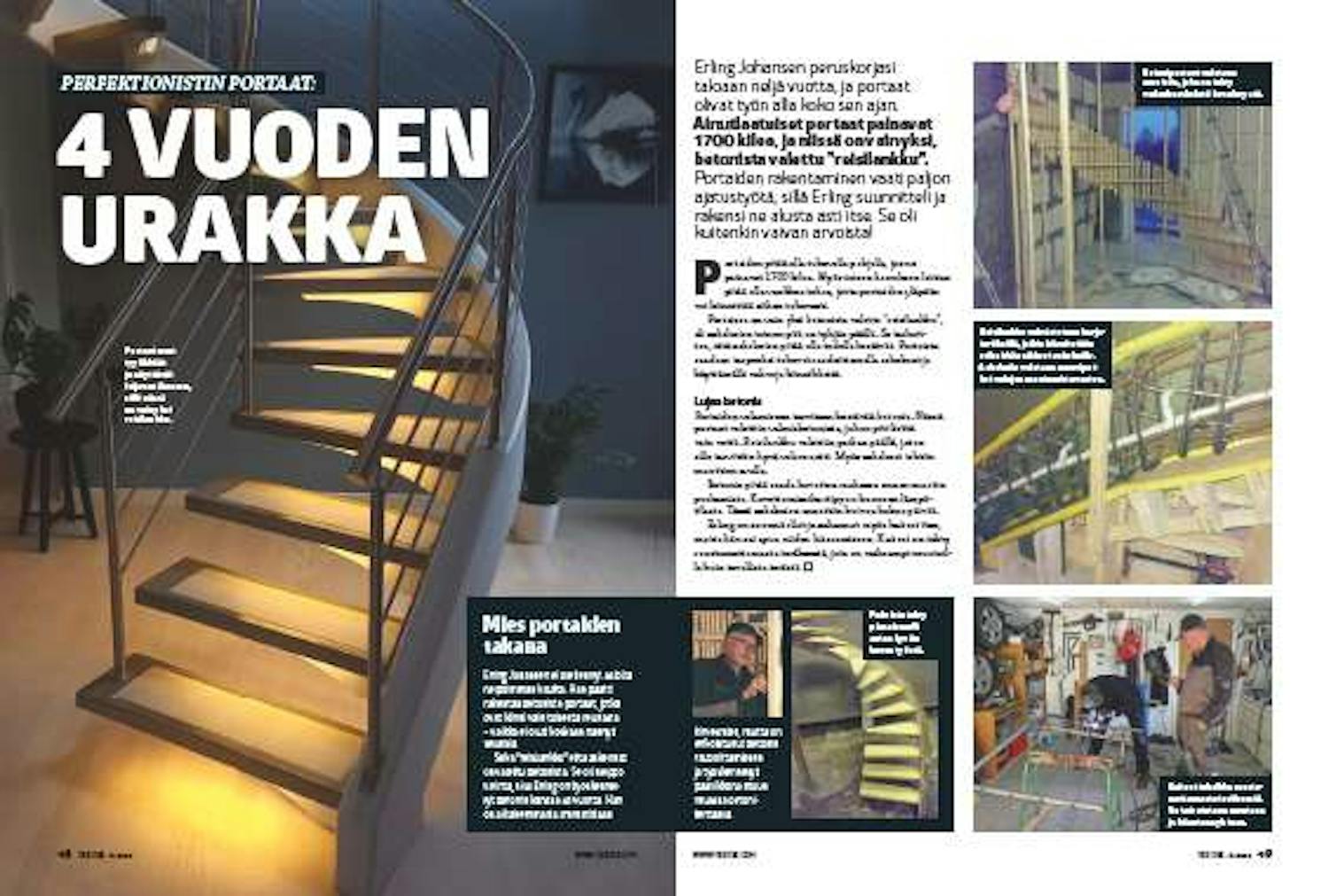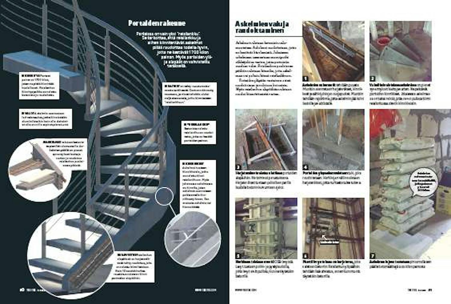 Portaissa on vain yksi betonista valettu ”reisilankku”, eli askelmien toinen pää on tyhjän päällä. Se tarkoittaa, että askelmien pitää olla todella kestävät. Portaista saadaan tarpeeksi tukevat raudoittamalla askelmat ja käyttämällä vahvoja kiinnikkeitä.