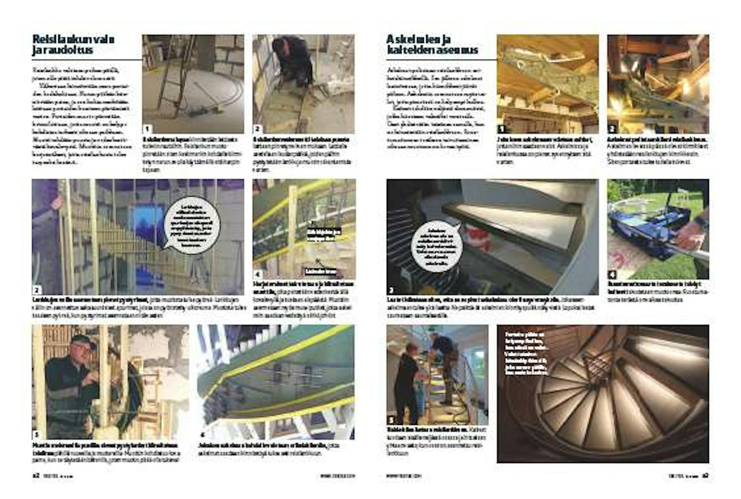 Jokaiseen askelmaan vedetään sähköt, jotta niihin saadaan valot. Askelmissa ja reisilankussa on pienet syvennyksen sitä varten.