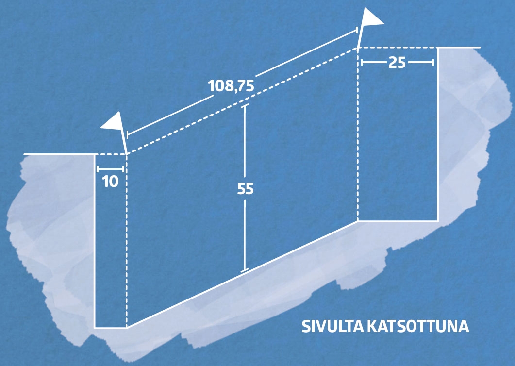 Kun portaiden paikka on mitattu ja linjalangat viritetty, on aika kaivaa sopiva kuoppa. Poista multainen pintamaa ja kaiva linjalangan alapuolelle 55 senttiä syvä kuoppa, jotta pohjasta tulee suora.