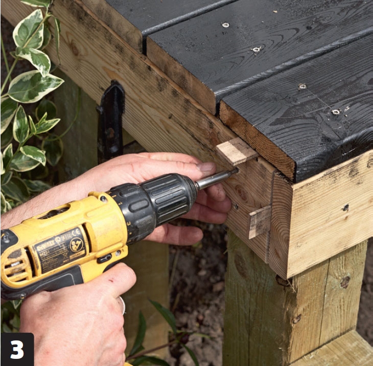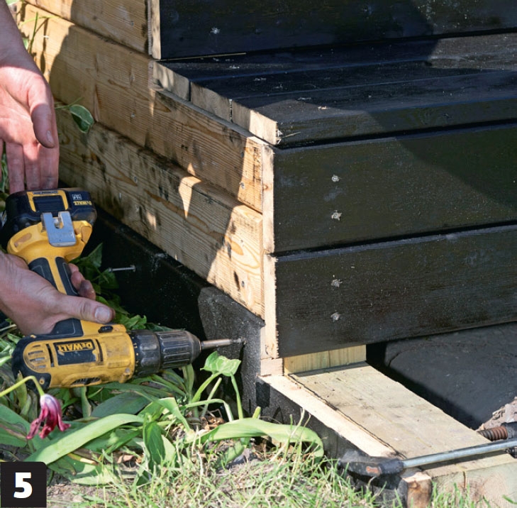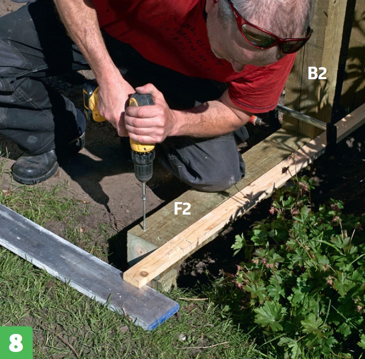 Sahaa ja asenna viimeiset peitelaudat. Laudat on maalattu etukäteen, sillä ne ovat osittain maan pinnan alapuolella.