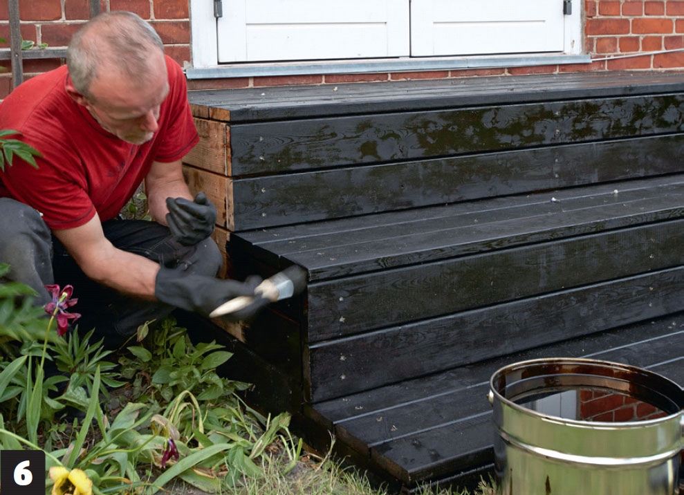 Portaat vuorataan terassilaudoilla. Laudat maalataan etukäteen, sillä ne altistuvat kulutukselle eniten.
