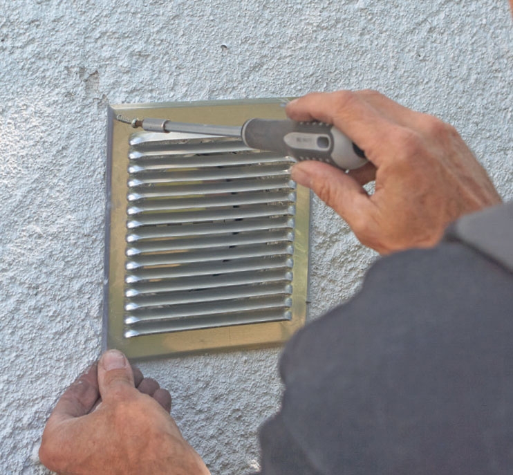 Poistoilmaventtiilin reiän teko vaatii samoja tehokkaita työkaluja kuin puhaltimen asennus. Kun paikka on löydet ty, kannattaa porata pieni reikä sisäpuolel ta seinän läpi, niin löytää oikean kohdan ulkoseinästä timanttiporakonetta varten.