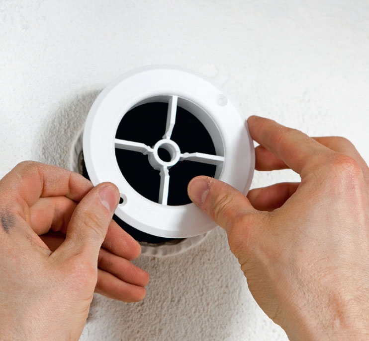 Aseta venttiili paikalleen. Putken sisäosa työnnetään reikään, jonka jälkeen venttiili painetaan tiukasti liimaan. Vaihtoehtoisesti sen voi ruuvata kiinni seinään.