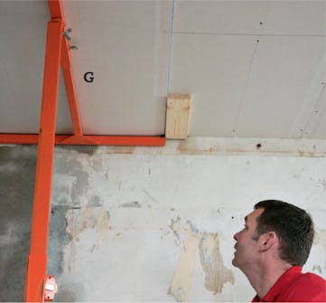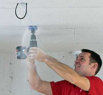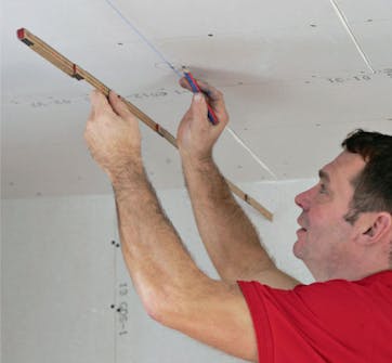 Kohdevalojen paikat merkitään, ennen kuin levysaumat tasoite-taan. Jos aluslaudoitusta on muutettava tai jotain kaapelia korjattava, levy on paljon helpompi irrottaa, kun ruuveja ei vielä ole kiinnitetty. Käytä liitunarua ja lyijykynää.
