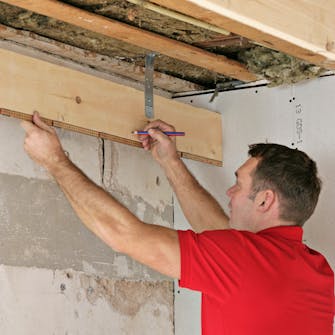 Käytä tarpeeksi aikaa selvittääk-sesi, miten aluslaudat on paras sijoit-taa. Kipsilevyt asennetaan kahteen limittäi-seen kerrokseen, joita tuetaan pitkältä sivul-ta. Lisäksi aiomme asentaa kattoon 19 koh-devaloa, joten suojaamme näitä paikkoja.