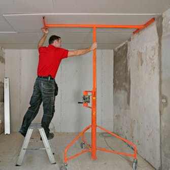 Linjalaservesivaa’asta tai rotaatiola-serista on työssä paljon apua. Laserin punaisen viivan avulla voi nopeasti varmistaa joka puolelta huonetta, että koolauslaudat ovat tarkalleen oikealla korkeudella.
