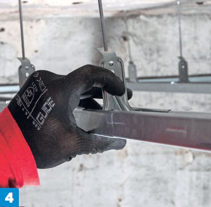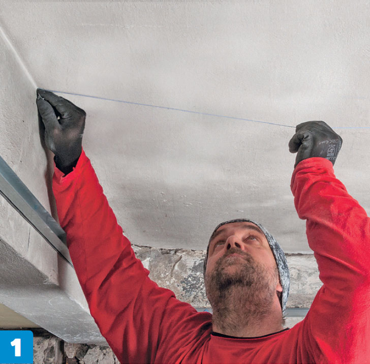 Mittaa kannakkeiden paikat. Voit käyttää apuna värilankaa, joka merkitsee kan-nakkeiden asennuslinjan kattoon yhdellä räpsäytyksellä.