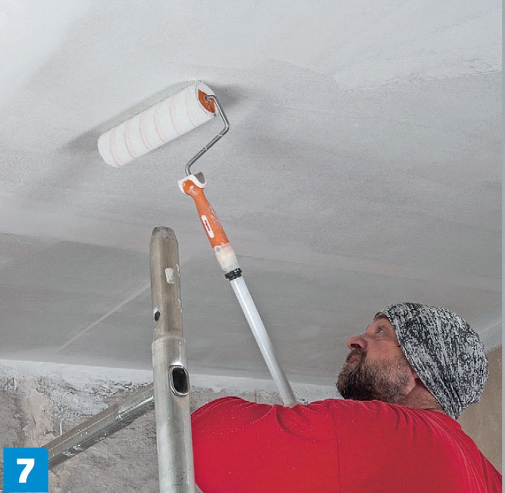 Pohjusta katto ennen maalaamista. Pohjuste varmistaa, että maali tarttuu kunnolla kiinni. Pohjuste on helpointa levittää telalla, mutta voit käyttää myös maaliruiskua.