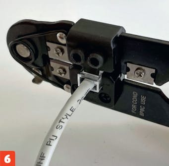 Purista liitintä pihdeillä, kunnes kuulet pienen napsahduksen. Nyt liitin on kiinni johtimissa, ja voit päästää irti johdosta.