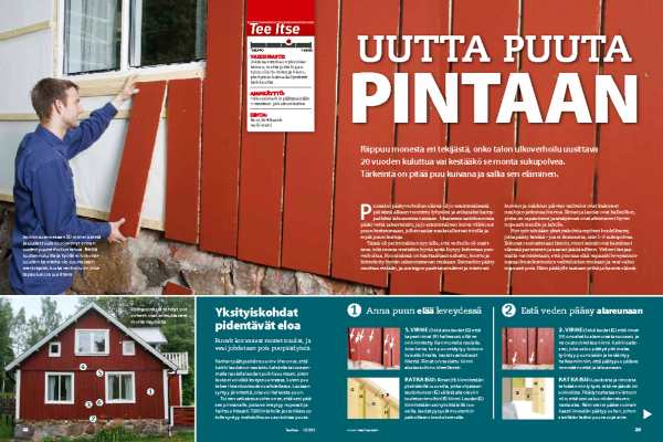 Laudat ja rimat on pohjustettu ja maalattu hyvissä ajoin etukäteen. Jos laudat maalaa vasta kun verhoilu on tehty, voi olla varma, että rimojen taakse lautojen pintaan ilmestyy maalaamatto-mia kaistaleita, kun puu kuivuu.