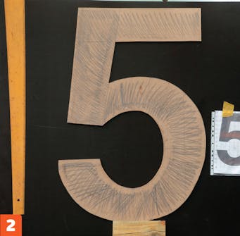 Talonumeron tekeminen aloitetaan tulostamalla A4-kokoiselle paperille numero 5 haluamallasi fontilla. Numerosta tulee noin 25 senttiä korkea, ja se suurennetaan nelinkertaiseksi.