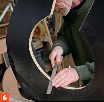 Käy reunat läpi lamellihiomalaikalla, kunnes ne ovat sileitä ja tasapainoisia. Voit hioa ulkoreunat myös alustaan kiinnitetyllä nauhahiomakoneella, jos osaat käsitellä numeroa tasaisesti.