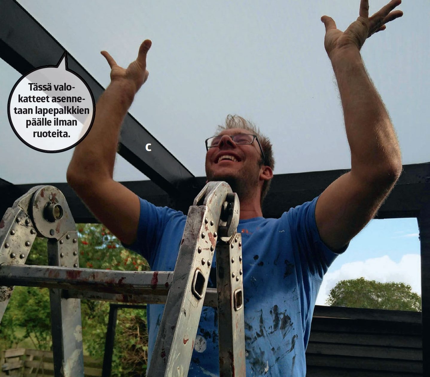 Tämän katoksen rakentaminen ei ole vaikeaa. Tilaa laskelmat puurungosta ja asenna valokate valmistajan ohjeiden mukaan.