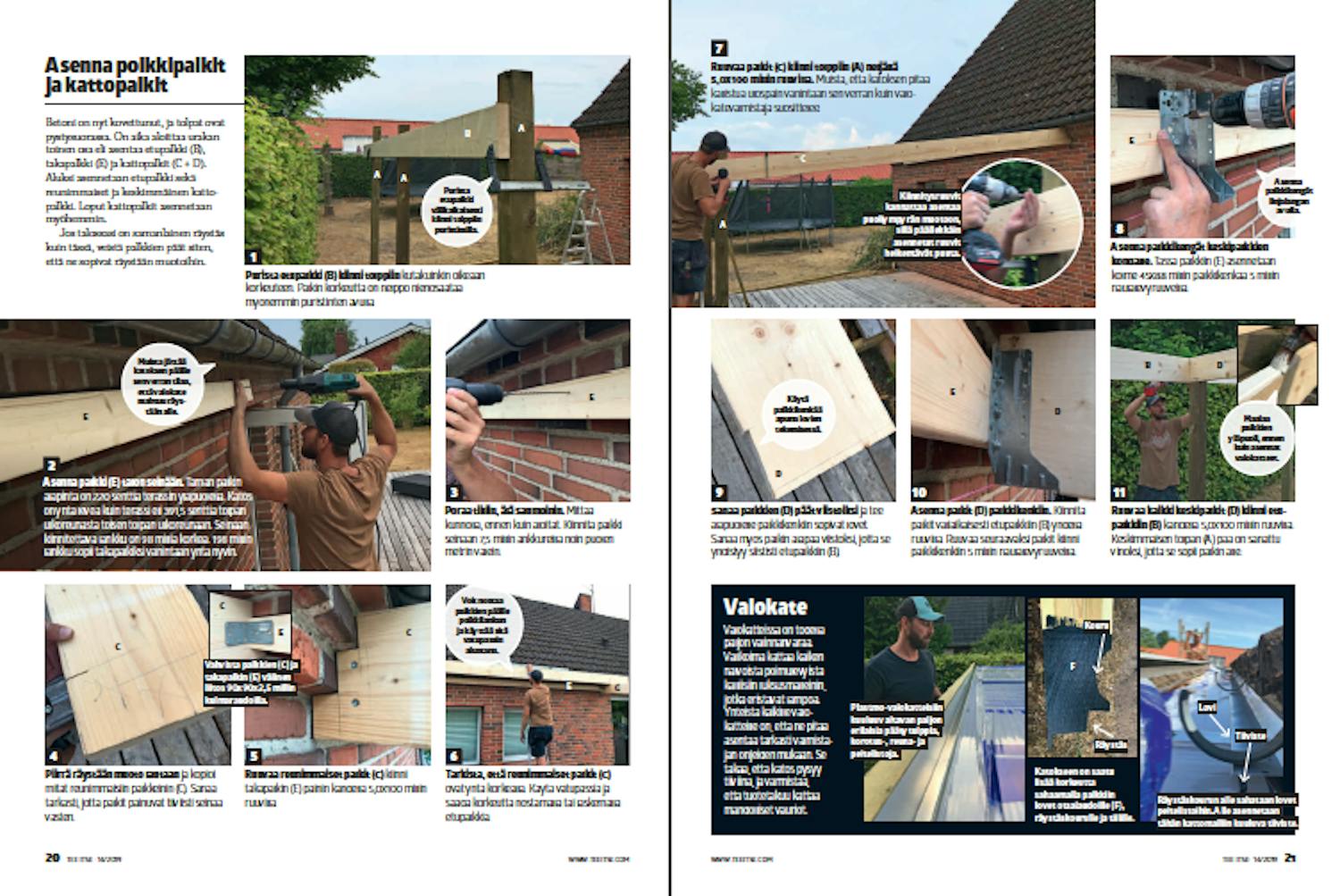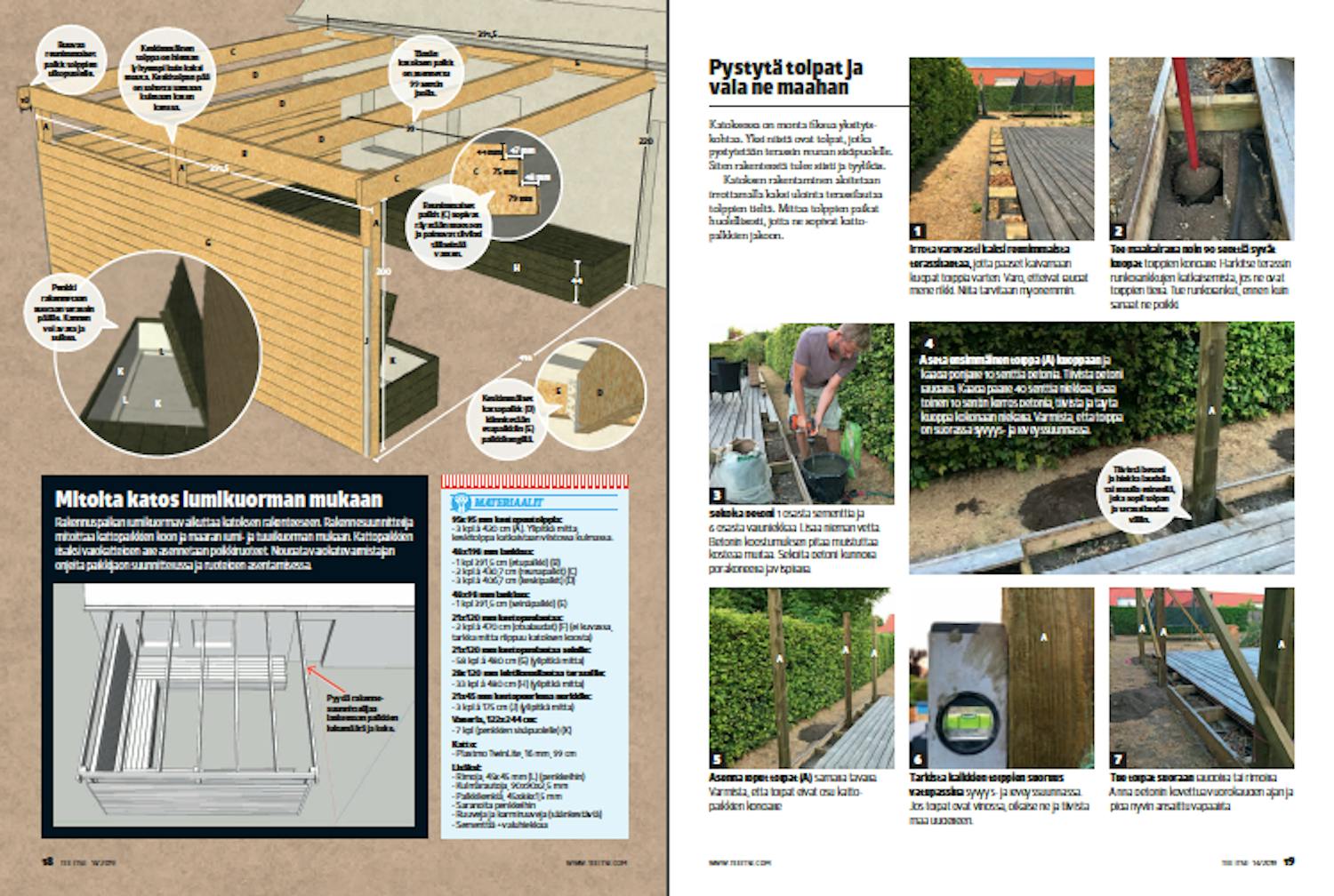 Iso urakka, jossa pitää ottaa huomioon monta asiaa. Tolppien pystytys ja katoksen rakentaminen on sisänsä varsin helppoa.