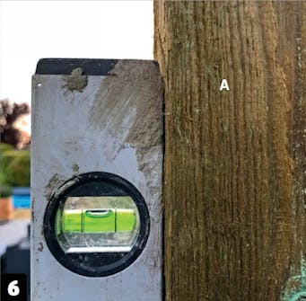Tarkista kaikkien tolppien suoruus vatupassilla syvyys- ja leveyssuunnassa. Jos tolpat ovat vinossa, oikaise ne ja tiivistä maa uudelleen.