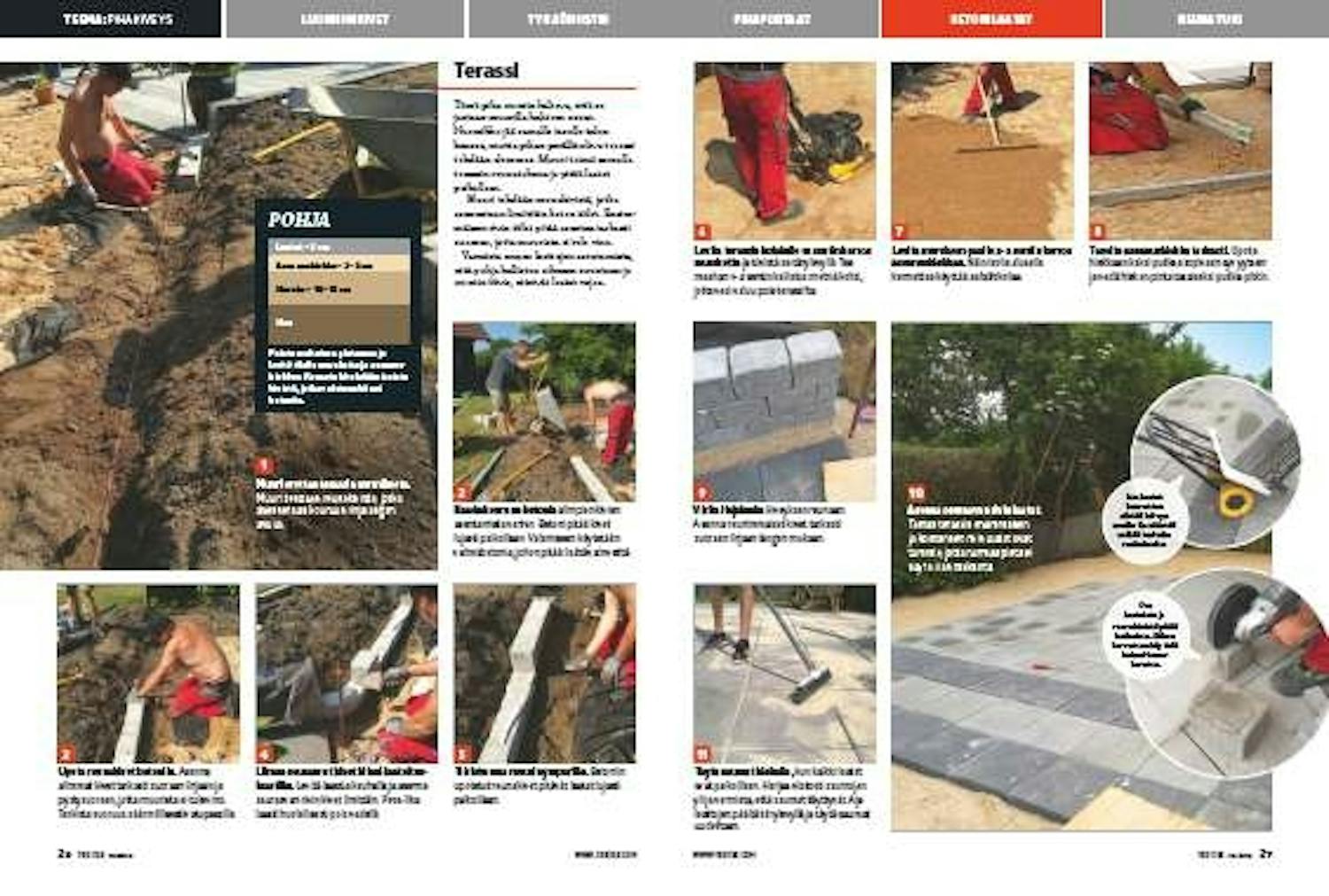 Laattaterassin rakentaminen on työläs mutta helppo urakka. Tee terassille kunnon reunatuki ja tiivis pohja, joka kallistuu oikeaan suuntaa.