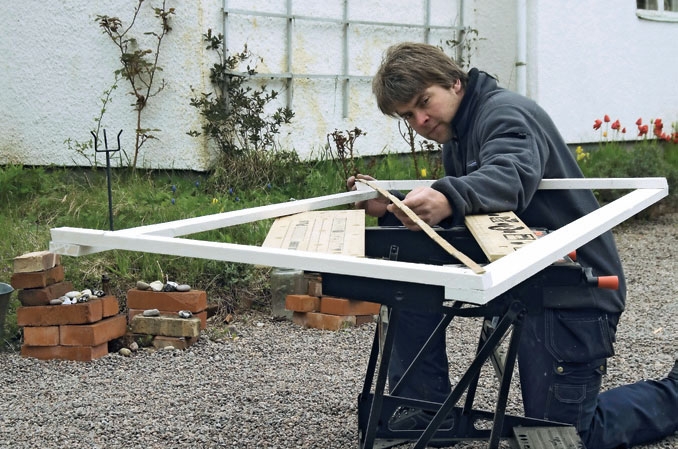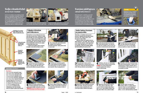 Sijoita kapeat laudat leveiden väliin ja ruuvaa osat yhteen. Käytä kaikkiin kohtiin 6 x 80 mm ruuveja.