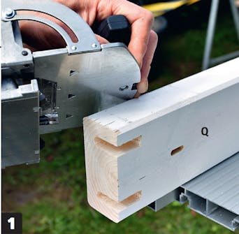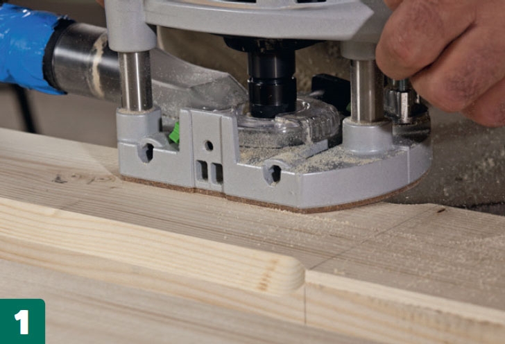 Jyrsi tolppien nurkat. Kiinnitä yläjyrsimeen nurkkaterä ja työnnä sitä tolpan reunaa pitkin. Nurkat jätetään teräviksi kaiteiden kohdalta.