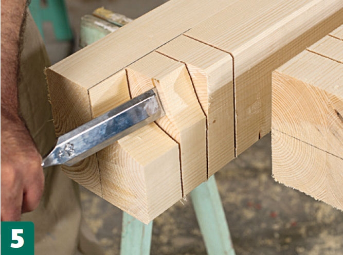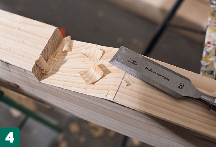Poista puu terävällä taltalla. Aseta taltta loven alkuun ja upota terä sahausuraan asti. Pidä viivoja tarkasti silmällä ja poista puuta, kunnes pinta on tasainen.