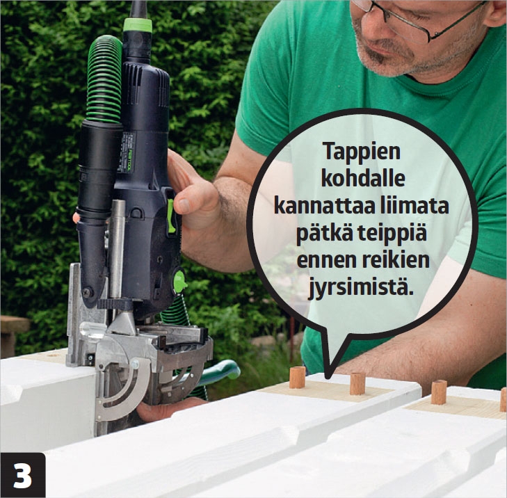 Tapinreiät tehdään lamellijyrsimellä, jotta kaikista rei’istä tulee täsmälleen samanlaiset.