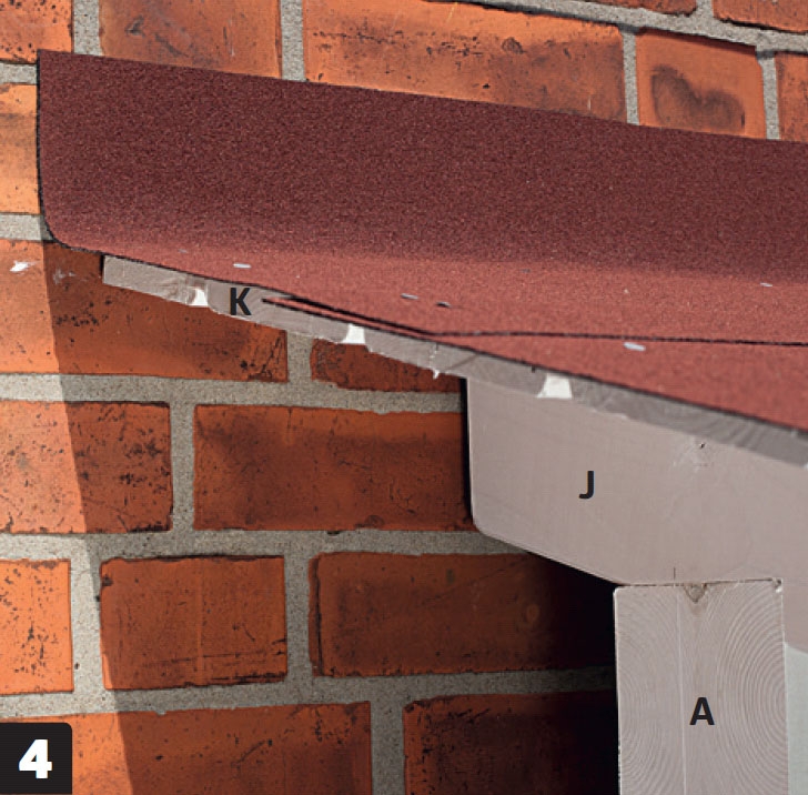 Anna huopakaistaleen nousta seinälle noin kahdeksan sentin verran. Sauma peitetään myöhemmin alumiinilistalla. Se pitää veden poissa katon ja seinän välisestä raosta.