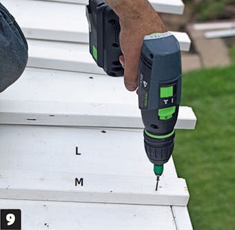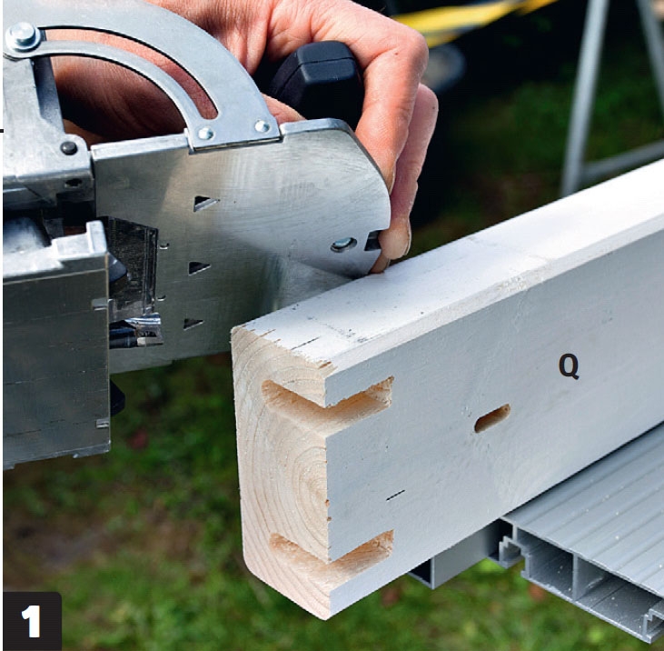 Sahaa kaiteiden vaakalankut (P, Q ja R) ja tee niihin tapinreiät. Tapit pitävät kaiteet kiinni tolpissa todella lujasti.
