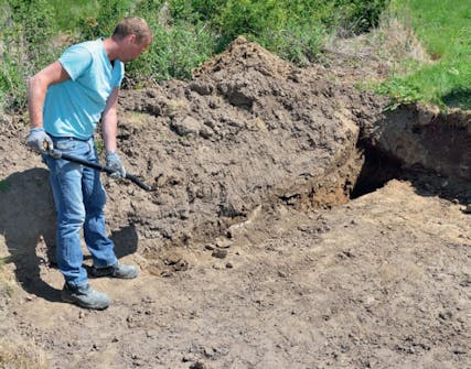 Poista aluksi kaikki multa terassin paikalta. Kaiva tukimuurin kohdalle 90 senttiä syvä ja 40 senttiä leveä kouru.