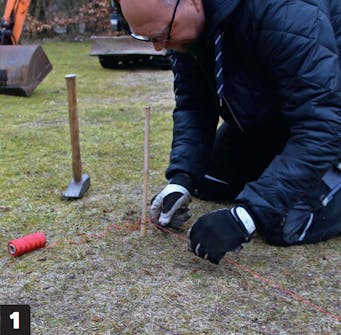 Aloita rajaamalla alue linjalangoilla. Lyö nurkkakepit syvälle maahan, jotta ne eivät irtoa, jos ja kun kompastut lankoihin.