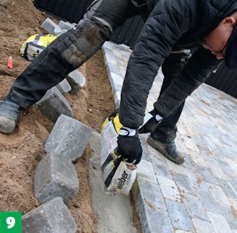 Voit latoa kivet limittäin tiilikuvioon tai asentaa ne jollakin muulla tavalla. Rivien viimeiset kivet voi katkaista laattaleikkurilla.