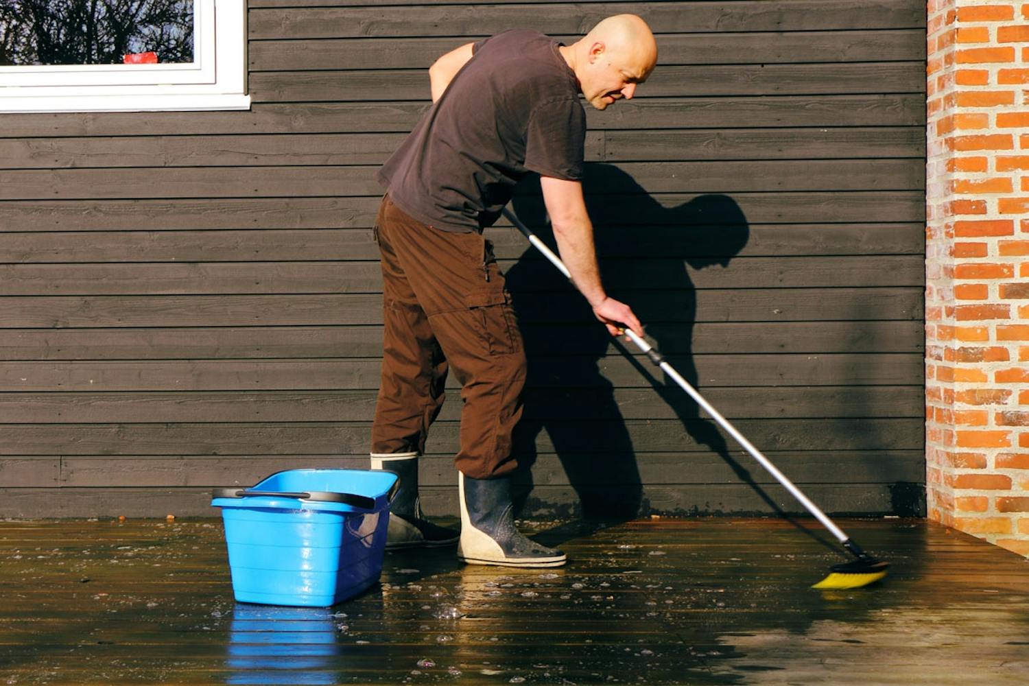 1. Levitä pesuaine ja harjaa terassi puhtaaksi