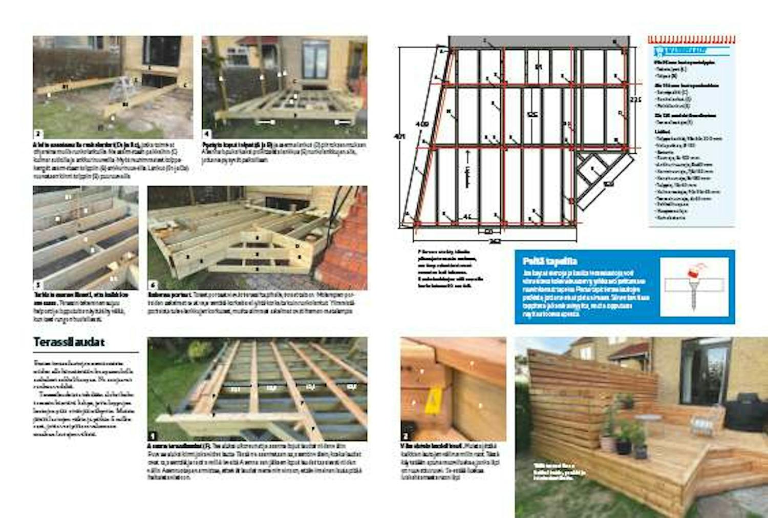 Projekti sopii kokeneelle tee se itse -rakentajalle. Tolppakenkien asentamisessa ja rungon rakentamisessa pitää olla tarkkana.