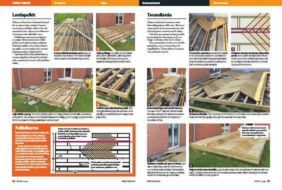 Kun ensimmäiset laudat ovat oikeilla paikoillaan, ne ruuvataan kiinni lattiapalkkeihin. Tämän jälkeen hommaa vain jatketaan samoin.