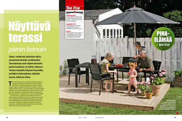 Sahaa pitkät ristikkäislinjat tarkasti. Muilta osin tämän terassin rakentaminen ei ole erityisen vaikeaa.