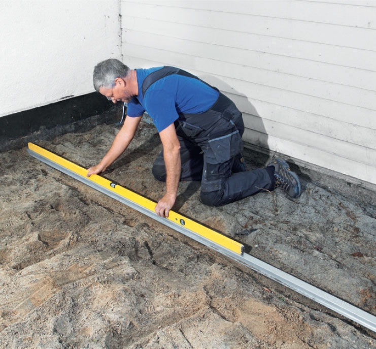 Ennen kuin ryhdyt asentamaan puuterassia, varmista alustan vankkuus. Alustan rakenne on samanlainen kuin laatoituksissa eli tiivistettyä hiekkaa ja sen päällä kerros tasoitushiekkaa. Jos terassin paikalla on ennestään laatoitus, voit nostaa laatat pois ja käyttää alustan hyväksesi tai jättää laatat paikoilleen ja käyttää niitä puuterassin alustana.