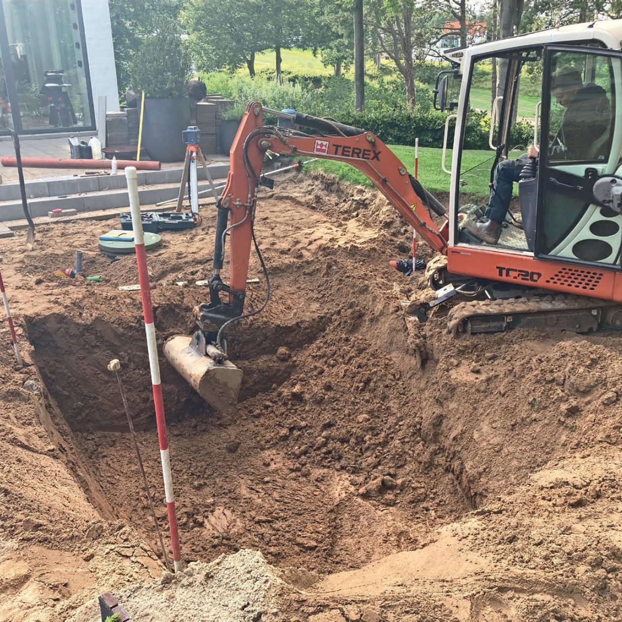 Voit periaatteessa kaivaa altaan kuopan pelkällä lapiolla, mutta se sujuu paljon helpommin minikaivurilla. Säästät selkääsi ja kaivat puolitoista metriä syvän 4x5 metrin kuopan parissa tunnissa.