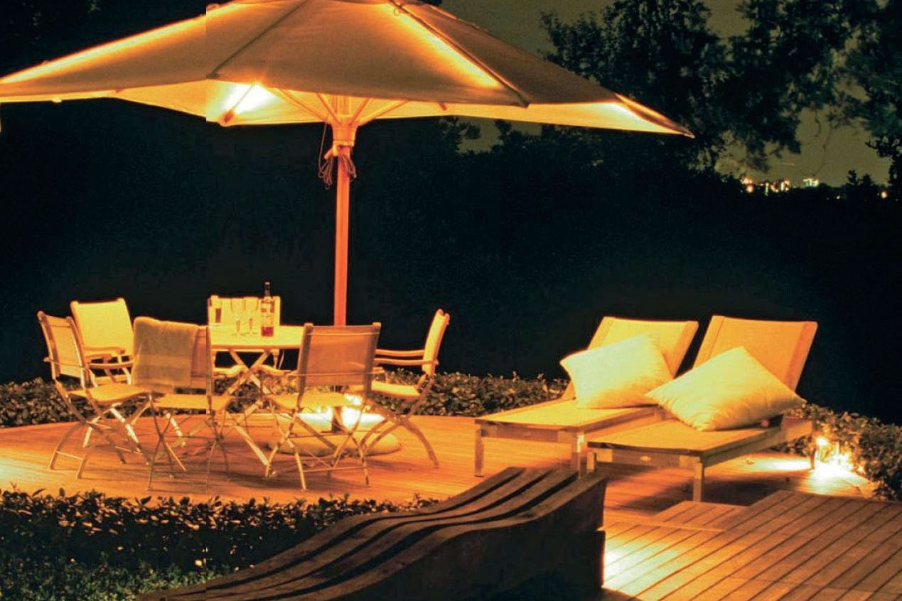 Terassin valot ovat paljon muutakin kuin käytännöllinen välttämättömyys. Kun pimeys laskeutuu, valot voivat luoda täysin uutta ilmettä. Valo luo tiloja, koros-taa yksityskohtia, tuo tunnelmaa ja ohjaa kulkua ja katsetta. Terassin saa nostettua pimeydestä esiin tehokkailla muutaman watin LED-valoilla. Vähän virtaa kuluttavat lamput on yleensä koottu sarjaksi, jonka voi itse asentaa ja liittää ulkopistorasiaan.