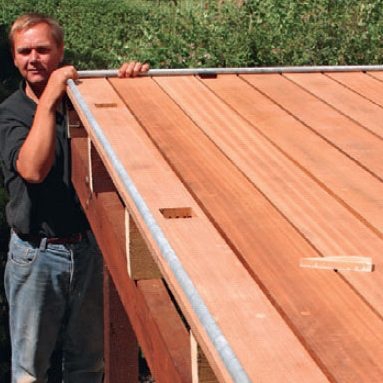 Uloimpaan terassilautaan on tehty aukkoja kaidetolpille, jotta ne voidaan pultata kiinni alla oleviin palkkeihin.