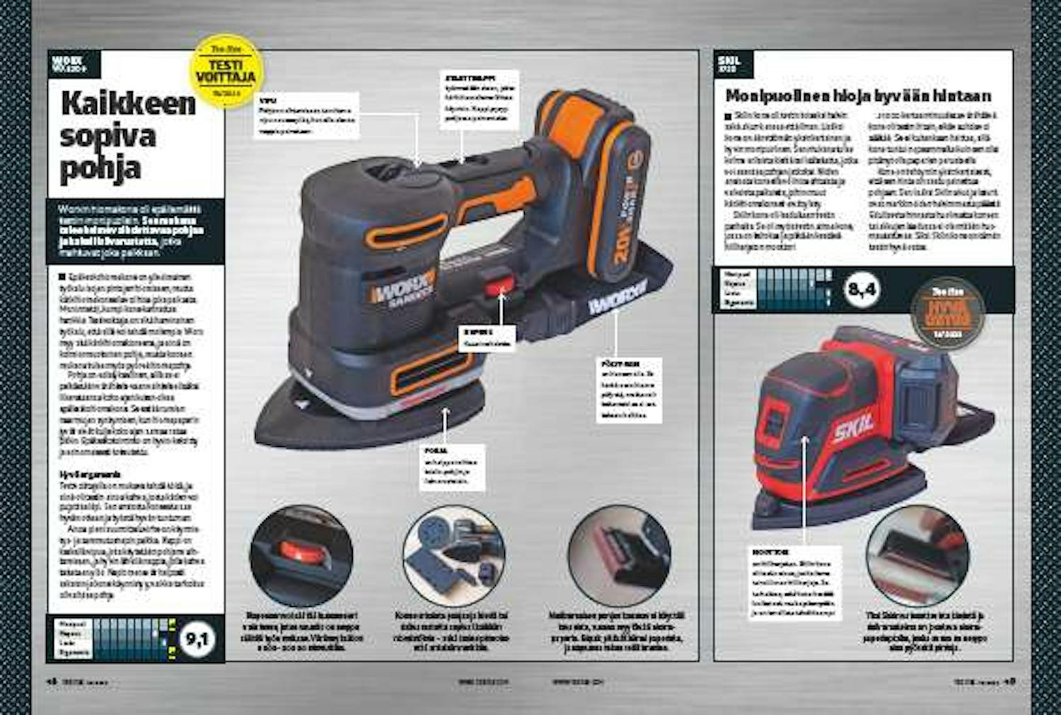 Epäkeskohiomakone on ylivoimainen työkalu isojen pintojen hiomiseen, mutta kärkihiomakoneella voi hioa joka paikasta. Moni miettii, kumpi kone kannattaa hankkia. Testivoittaja on siitä harvinainen työkalu, että sillä voi tehdä molempia. Worx myy sitä kärkihiomakoneena, ja siinä on kolmionmuotoinen pohja, mutta koneen mukana tulee myös pyöreä hiomapohja.