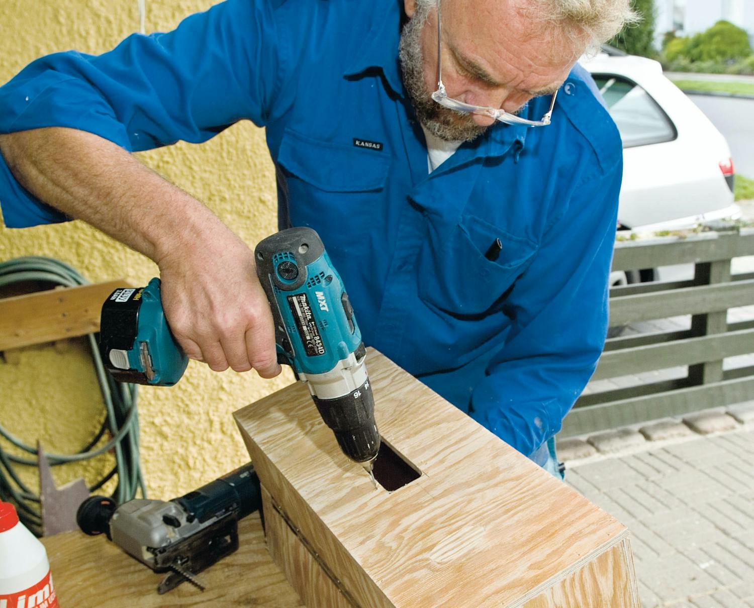 Kun sivut ja kansi- ja pohjalevyt on sahattu, ne kootaan vedenkestävällä liimalla ja ruuveilla tai hakasilla. Meidän puuseppämme käyttää hakasia ja nau-lainta. Työ sujuu nopeasti, ja hakaset ja liima pitävät laatikon varmasti koossa.