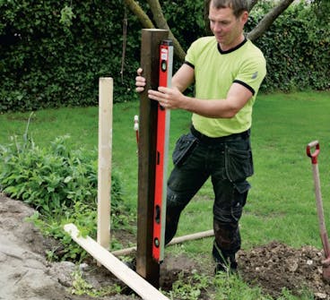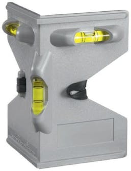 Nerokas erikoisvatupassi tolppien pys-tyttämiseen. Vatupassi puristetaan kiinni tolpan nurkkaan. Vatupassin kolme libelliä mittaavat suoruuden kaikissa suunnissa.