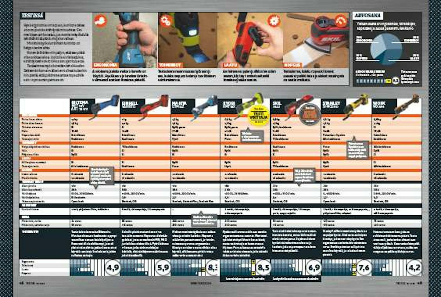 Testasimme muun muassa työvalon ja sen, kuinka helppoa terien ja tarvikkeiden vaihtaminen on.
