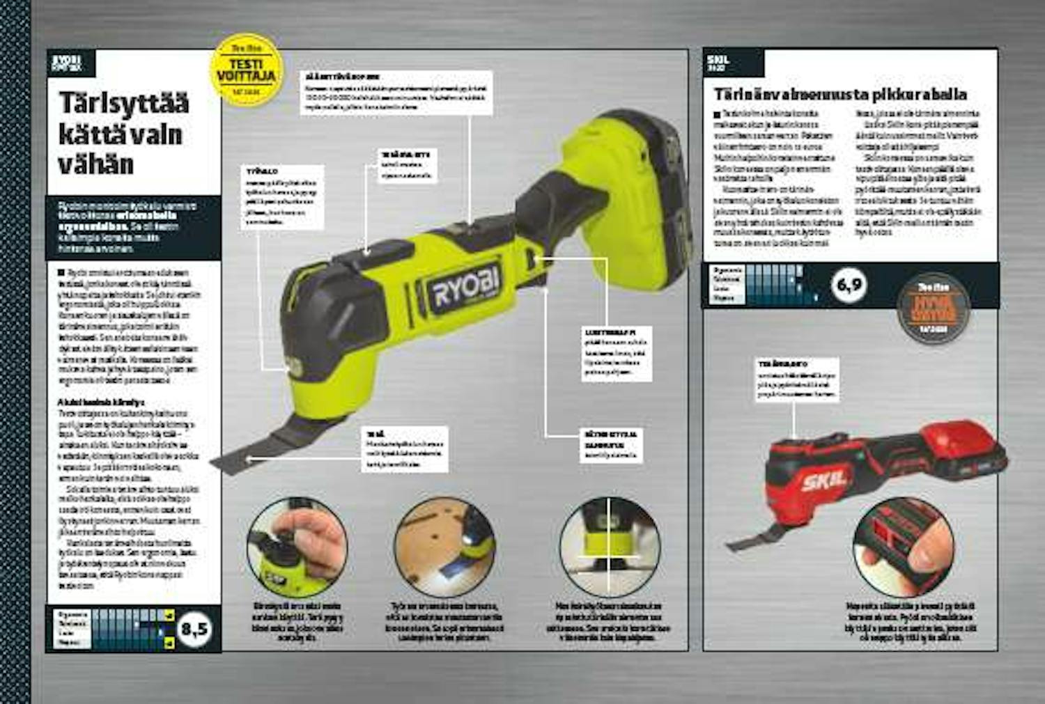 Hankalasta teränvaihdosta huolimatta työkalu on laadukas. Sen ergonomia, laatu ja työskentelynopeus olivat niin vakuuttavaa tasoa, että Ryobin kone nappasi testivoiton.