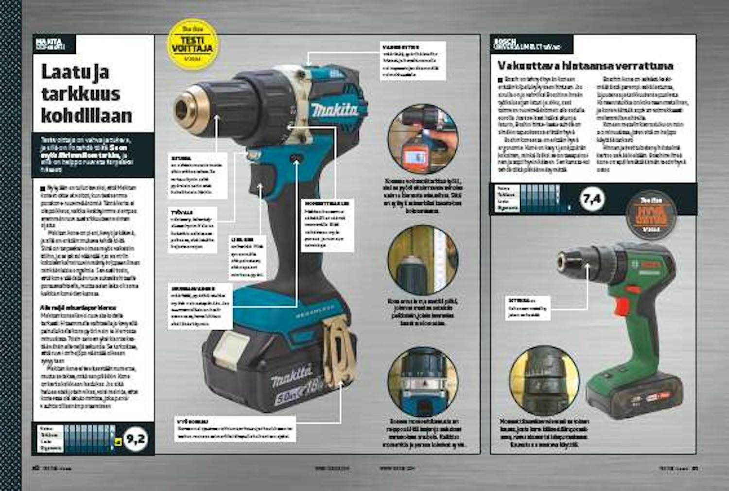 Nykyään on tullut tavaksi, että Makitan koneet ottavat voiton, kun testaamme porakone-ruuvinvääntimiä. Tämä kerta ei ole poikkeus, vaikka keskityimme aiempaa enemmän ruuvaustarkkuuteen voiman sijasta.